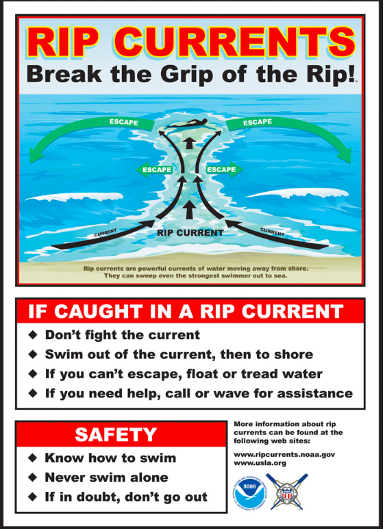 Be aware of local water conditions. Are there any swell advisories? Check our tide charts to find out tide times and levels. Another important safety tip is to know how to get out of a rip current if you find yourself drifting out to sea.
